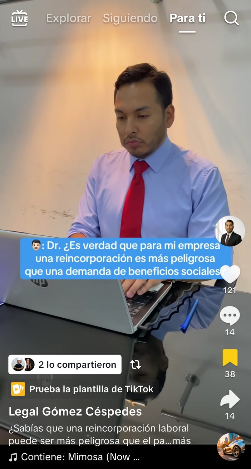 b. Reaccionar a videos de noticias legales u opiniones de terceros sobre temas relevantes de la sociedad y opinar con tu criterio legal.